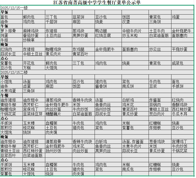 2025年12月15日——12月21日菜单公示