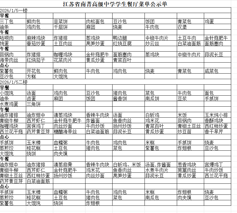 2026年1月5日——1月11日菜单公示